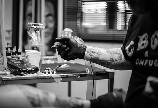 All our artists have been part of the team since the beginning, long before the official opening of the studio as it is today. Het Inktlokaal studio changed locations, but the team remained the same, and the enjoyment and professionalism of the work, as well as our skills, only grew over time. Our artists follow all changes and trends concerning the body art world, participate in tattoo conventions, and tour Europe and the world.
